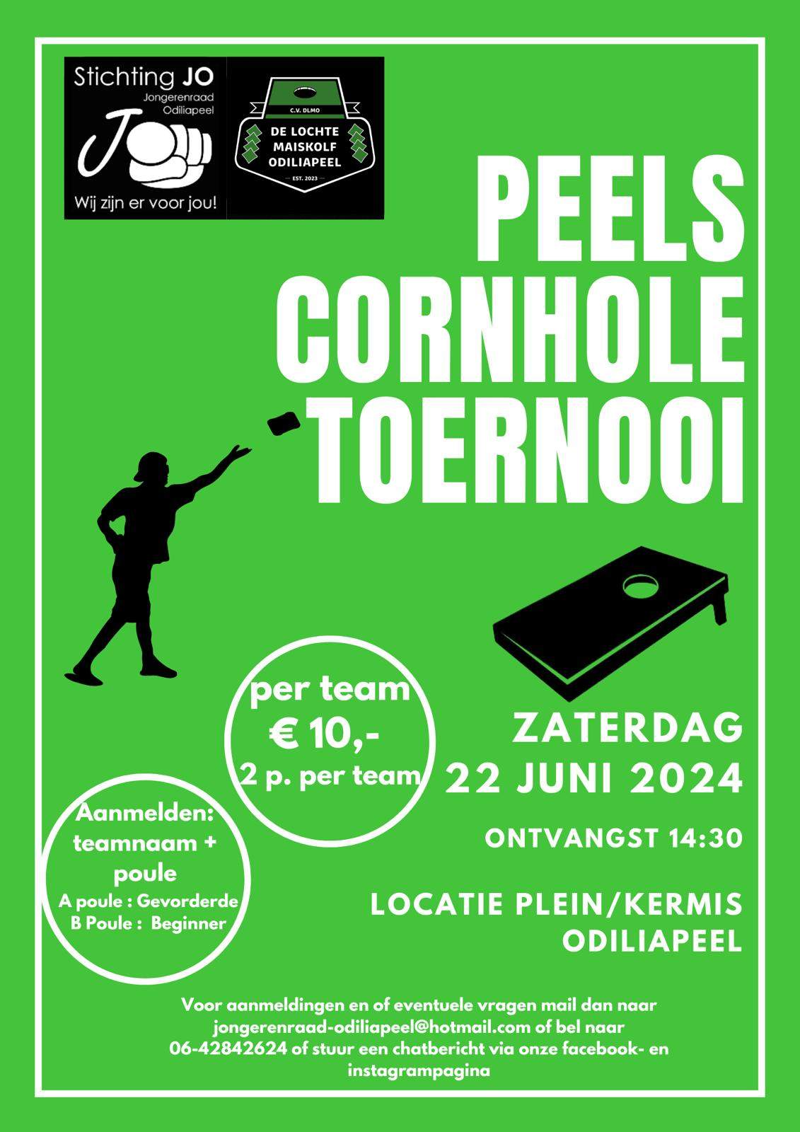 Op zaterdag 22 juni organiseert Jongerenraad Odiliapeel een cornhole toernooi op de kermis! Zorg ervoor dat je erbij bent! Ontvangst is om 14:30 uur. Het inschrijfgeld bedraagt 10 euro per team van 2 personen. Aanmelden kan via jongerenraad-odiliapeel@hotmail.com met vermelding van je teamnaam en of je wilt deelnemen in poule A (gevorderde) of poule B (beginner). We kijken ernaar uit om je te verwelkomen!
